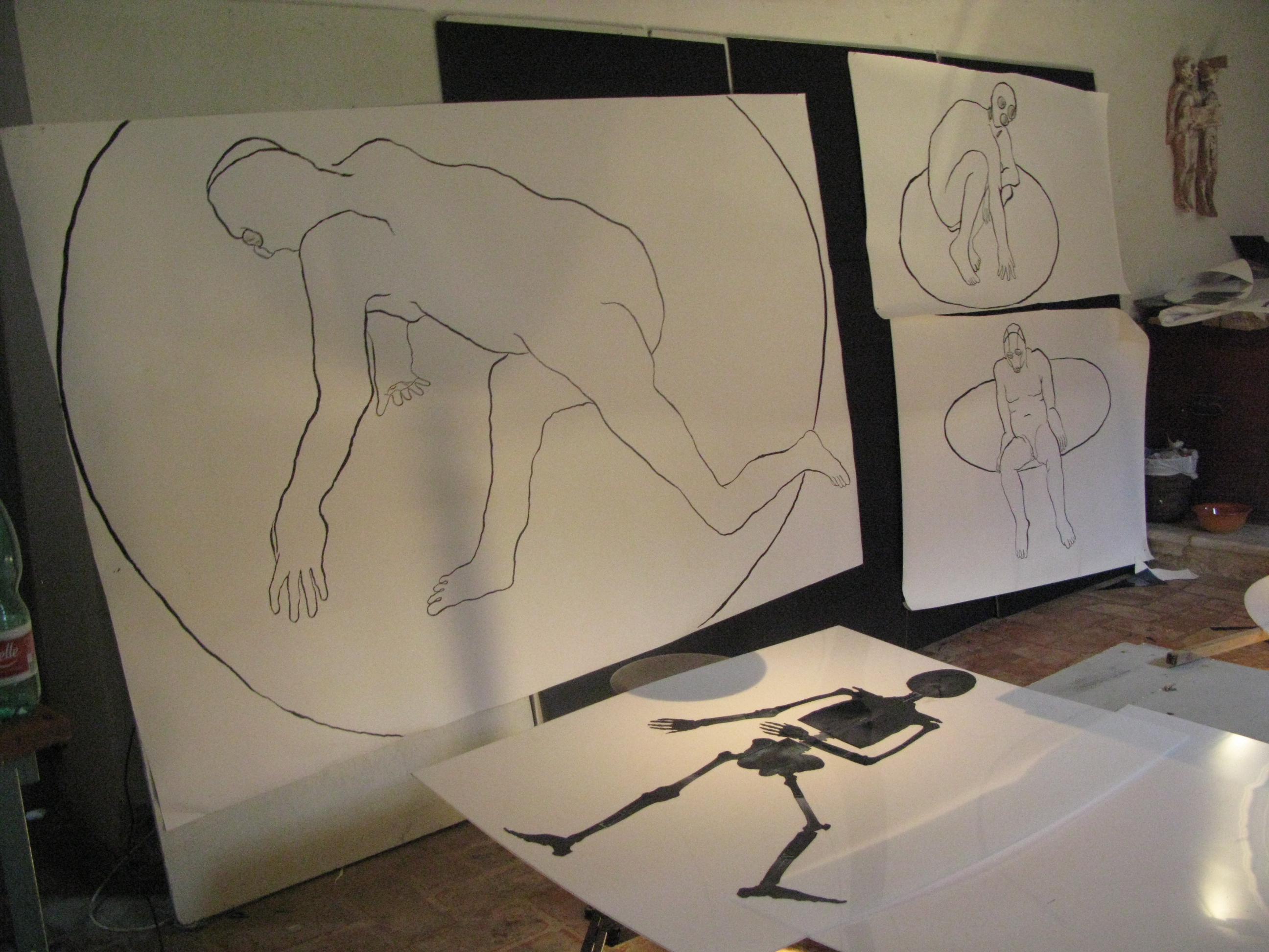 A form which closes upon itself in a very natural way. I discovered feet could be turned upside down, stand, lay and be distorted in every way and be expressive even with a few touches.