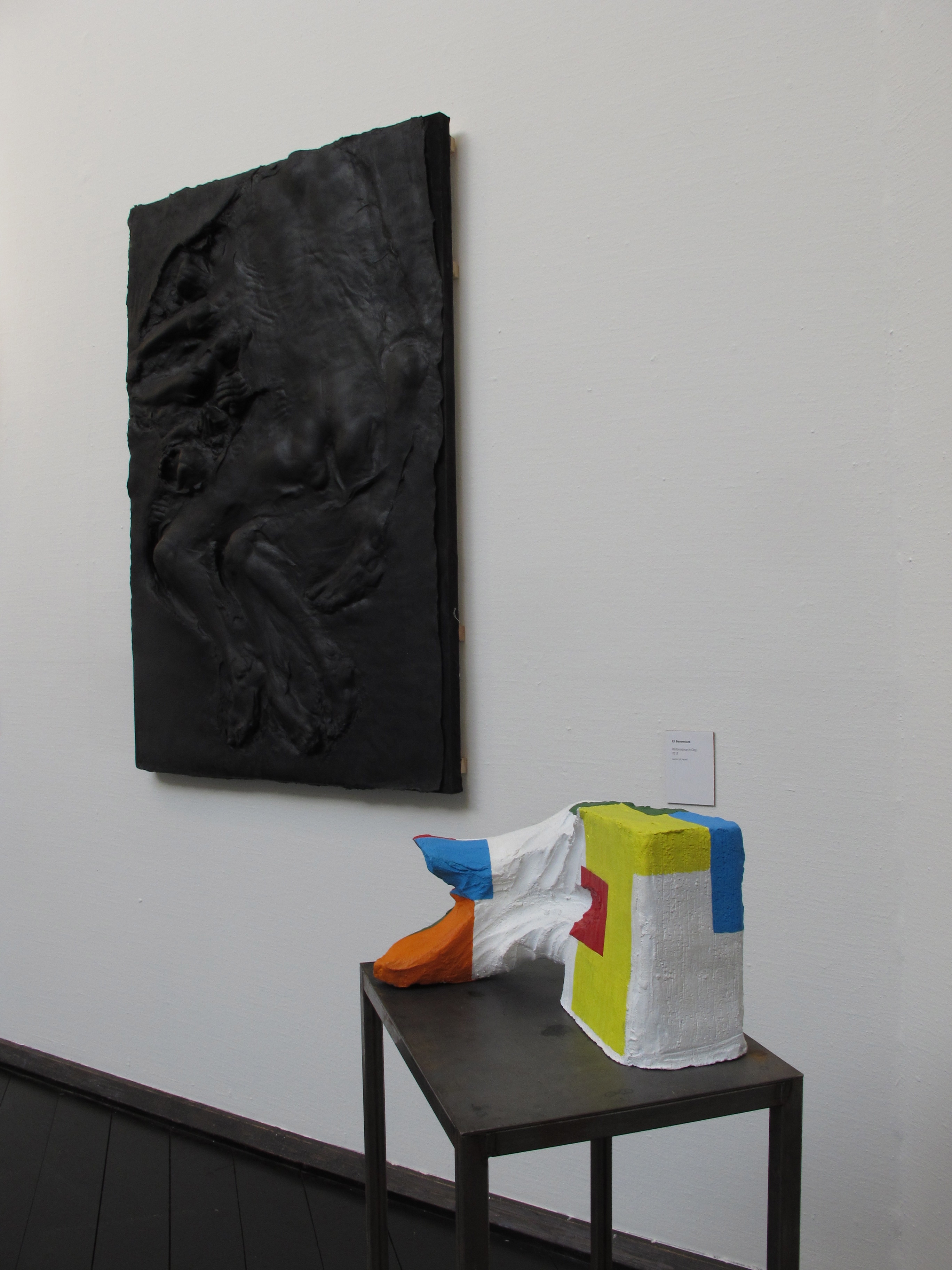 "Happenings in Rubber I and II", exhibited on the three faced pillar, preview the texture and techniques I’m developing for a monumental 10-meter relief for a courthouse in Frederiksberg, Denmark.