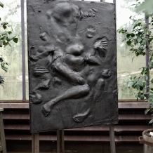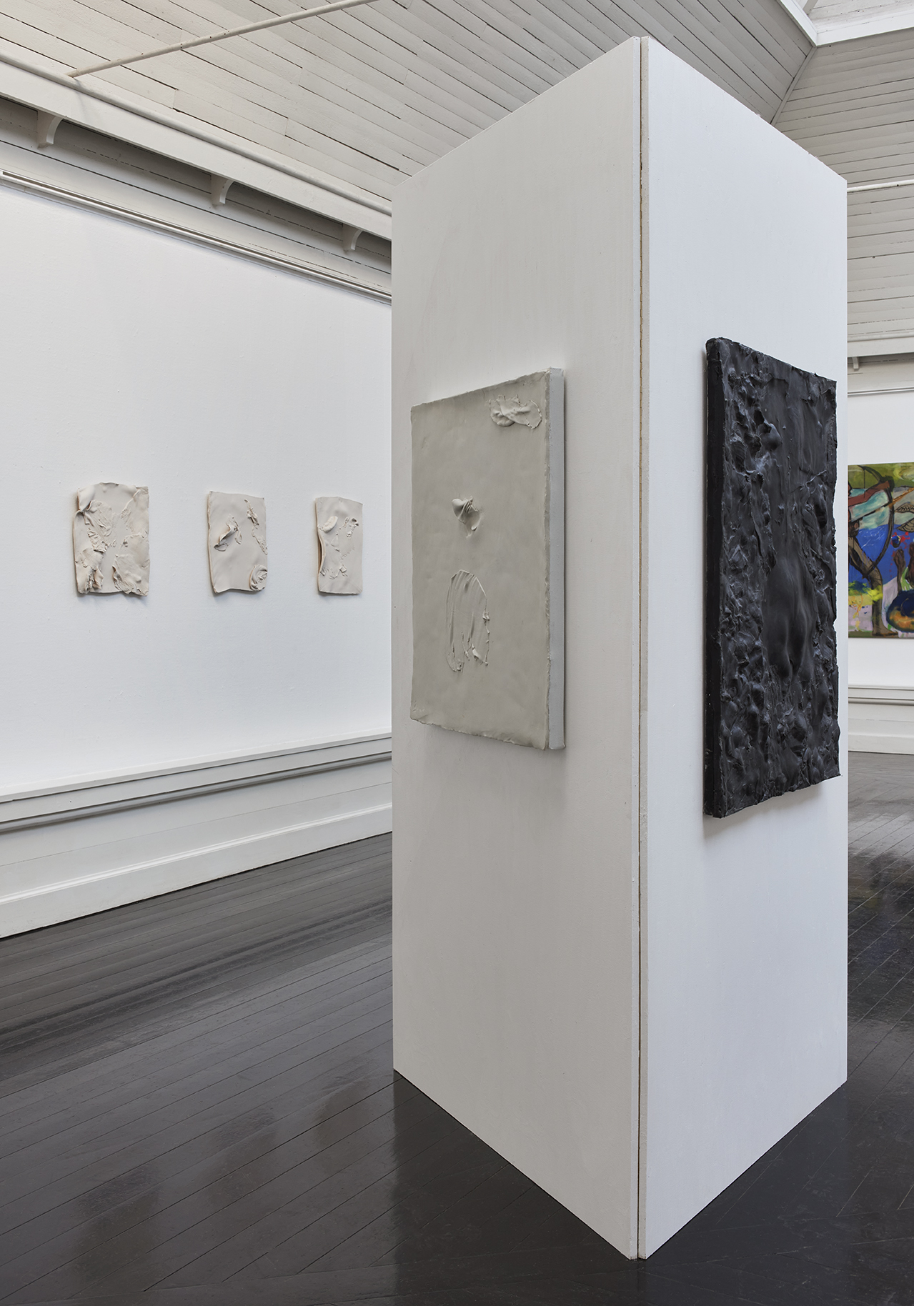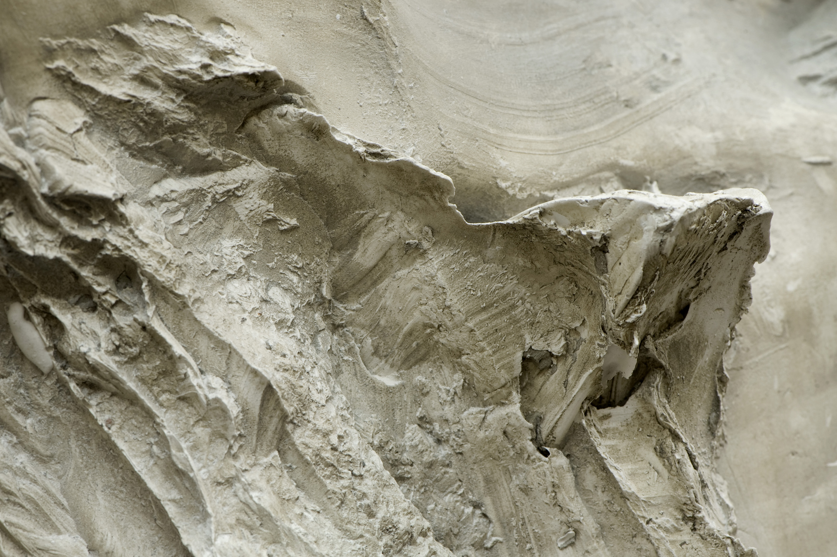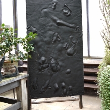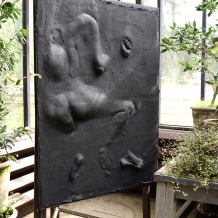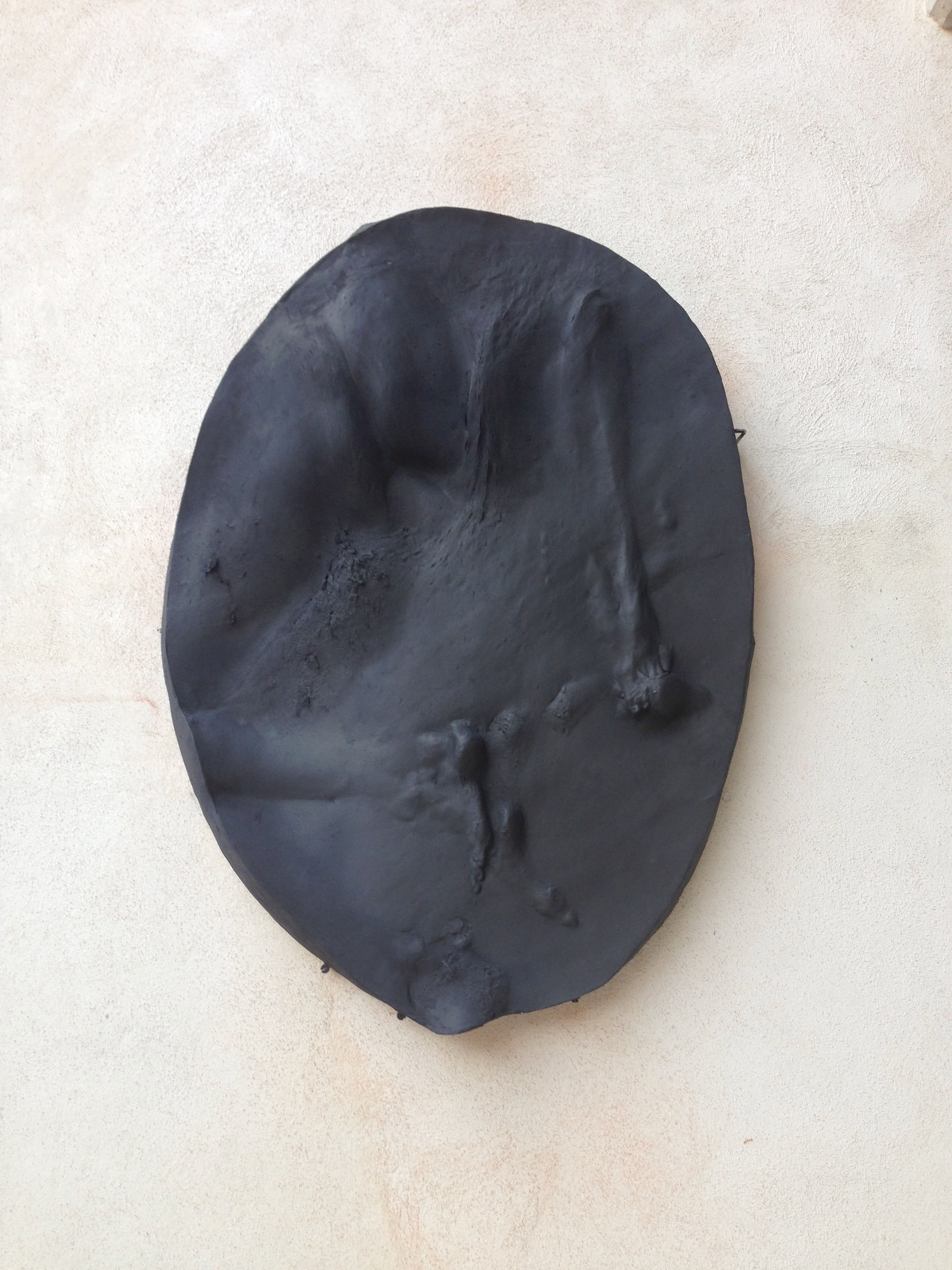Over the past year, I’ve been working on a series of ceramic reliefs, and sculptures, titled “Thrown into the World”. Each relief is modelled on nature’s terms, so to speak, letting the material come into its own. The same new expression and technique has led to the reliefs “Happenings in rubber” I and II.
