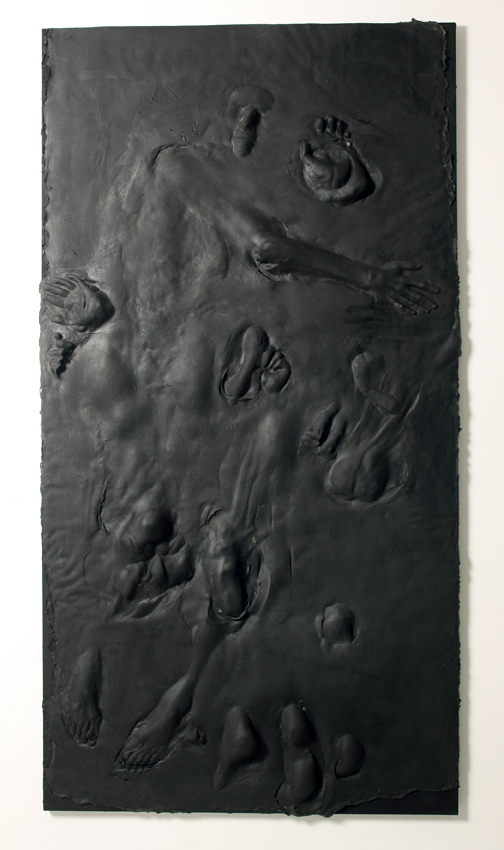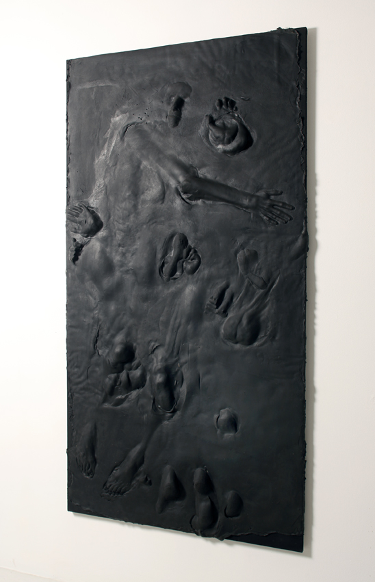 I have worked with rubber previously in works like "Performance in Clay", 2010 and at the Brancacci Art Gallery in Florence in 2023, I showed another series of new reliefs, called “Fossils in rubber”, using my body as a tool in the raw clay, which was later cast in rubber and mounted on canvas.