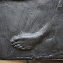 A piece turned out to be a refugee’s foot; a foot that had walked thousands of miles, tired and hardened and marked by the many steps taken under heavy burdens. Apparently, it was not necessary to make a whole body, let alone a face, to express a condition or situation; it could all be contained in there, abstract and yet recognizable at the same time.